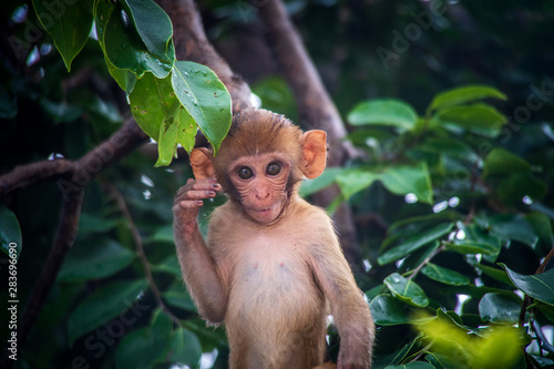 © jarntag, Fototapeta premium little monkey smile face in the bush