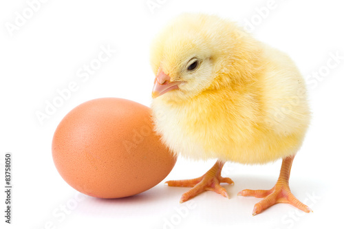 © Szasz-Fabian Jozsef, Fototapeta premium Little newborn yellow chicken with egg