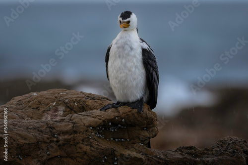 Fototapeta premium Little Pied Cormorant (Microcarbo melanoleucos) on a rock, Narooma, NSW, August 2024