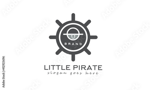 © Aprilia Yusuf, Fototapeta premium Little pirate logo design in dark gray color. isolated white logo template. vector