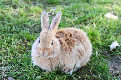 Fototapeta premium Little rabbit in grass close-up
