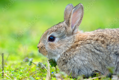 © tutye, Fototapeta premium Little rabbit on green grass in summer day