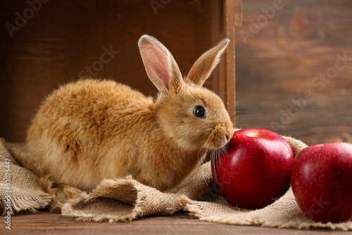 Fototapeta premium Little rabbit on wooden background