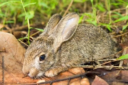 Fototapeta premium Little rabbit sleeping in a grass forest.