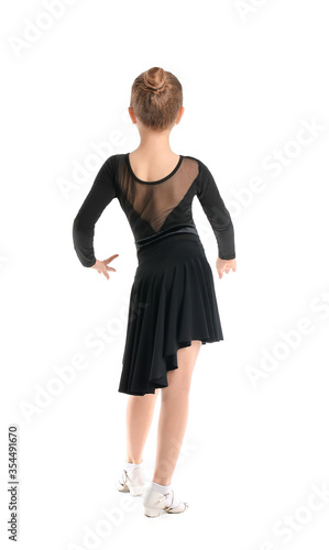 Fototapeta premium Little rhythmic gymnast on white background