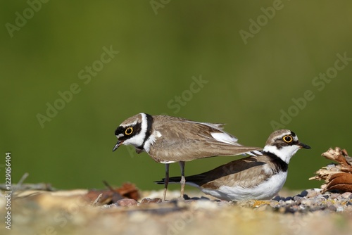Naklejka premium Little ringed plover (Charadrius dubius), courtship couple at the nesting...
