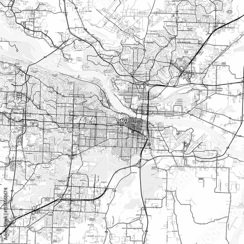 Naklejka premium Little Rock Area Map with Labels and Neighborhoods - One color, minimalistic...
