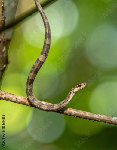 © MassaiIlmani, Naklejka premium little snake, in the forest, greenery background