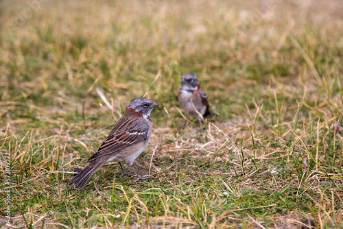 © Juan, Fototapeta premium little sparrow looking for food in the grass
