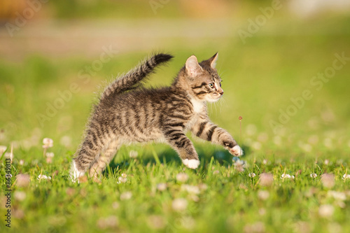© Rita Kochmarjova, Obraz premium Little tabby kitten running outdoors
