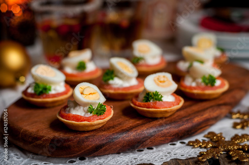 © dolphy_tv, Fototapeta premium Little Tarts of Salmon, Cheese and Egg