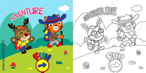 © contr4, Obraz premium little tiger and friend. cute vector cartoon illustration