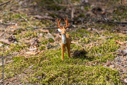 Obraz premium Little Toy Deer in a Green Forest on a Sunny Day