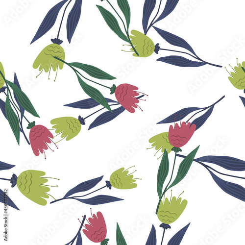 © smth.design, Obraz premium Little wildflower seamless pattern on white background.