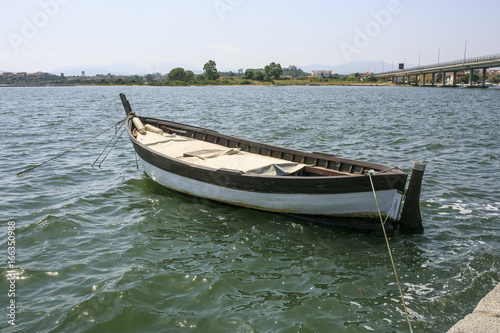 © photostocklight, Naklejka premium Little wooden boat in a river side