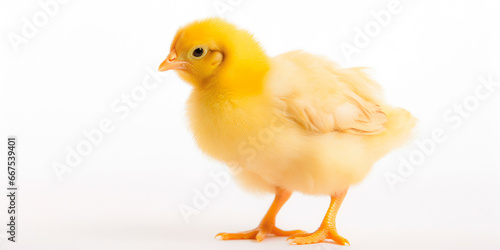 © Damianius, Obraz premium Little Yellow Chicken On A White Background Created Using Artificial Intelligence
