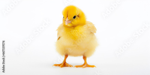 © Damianius, Obraz premium Little Yellow Chicken On A White Background Created Using Artificial Intelligence