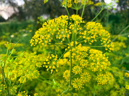 Obraz premium Little yellow flowers in garden in evening