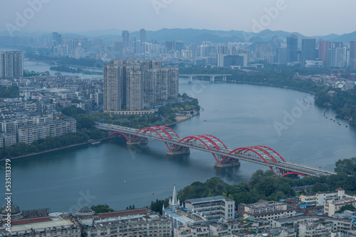 © 哲 樊, Obraz premium Liuzhou city skyline buildings in guangxi China