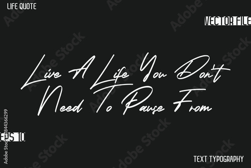 Obraz premium Live A Life You Don’t Need To Pause From -Motivational Life Quotes Stylish Cursive Typography Text Design