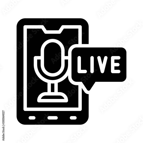 Fototapeta premium live and streaming related mobile screen with microphone vector in solid design,