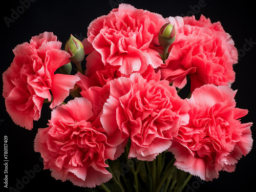© Llama-World-studio, Naklejka premium Live carnation flowers backdrop with space for inscription