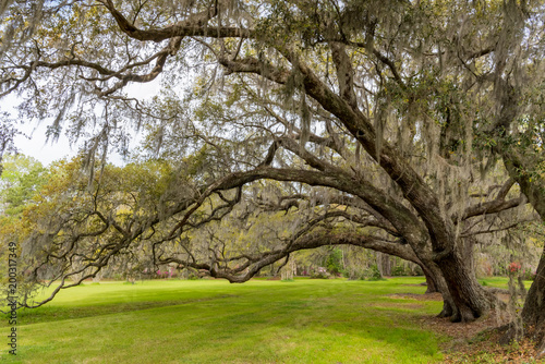 © kellyvandellen, Obraz premium Live Oaks Bow Over Green Grass