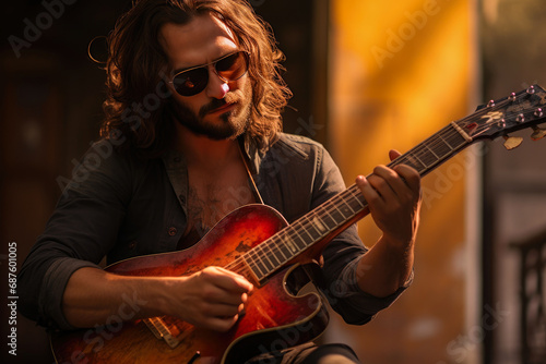 © Andrii , Obraz premium Live Performance: Guitarist Captivating Audience