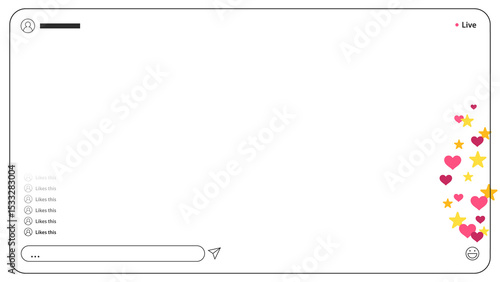 Fototapeta premium Live stream overlay is appearing as flat design on transparent background showing hearts and stars