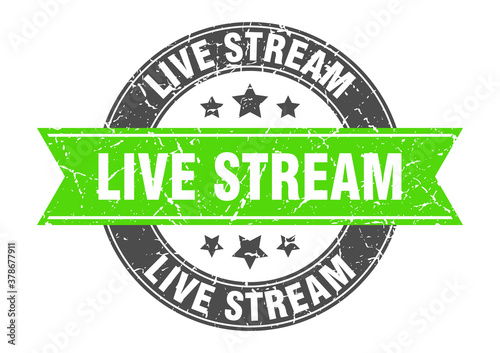 Fototapeta premium live stream round stamp with ribbon. label sign