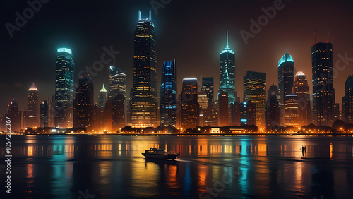 © arief, Naklejka premium Lively cityscape at night illuminated by city lights