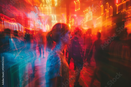 Fototapeta premium Lively Festival Event with Party Atmosphere and Blurred Crowd Motion