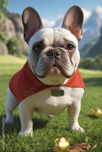 © Sambara, Fototapeta premium Lively French Bulldog Delighting in Outdoor Playtime