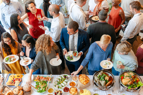 Fototapeta premium Lively gathering with diverse guests.