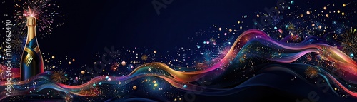 Obraz premium Lively New Year Celebration Design with Champagne Bottle and Sparkling...