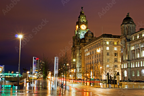 Fototapeta premium Liverpool's Historic Waterfront Buildings at Night