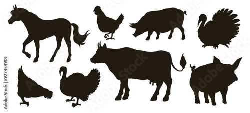 © DGIM studio, Naklejka premium Livestock and birds set emblem