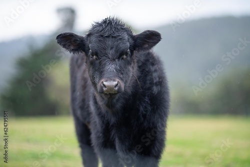 © Phoebe, Fototapeta premium livestock beef cattle in a field on a farm. close up of a cows face.