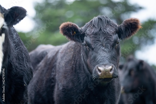 © Phoebe, Fototapeta premium livestock beef cattle in a field on a farm. close up of a cows face.