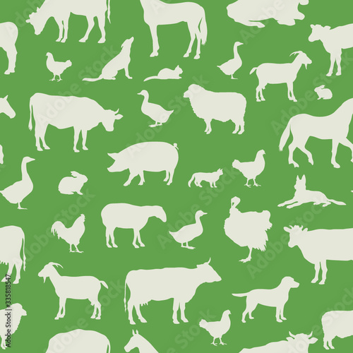 © Terriana, Fototapeta premium Livestock seamless pattern. Farm animals background. Farm animals silhouette vector set.