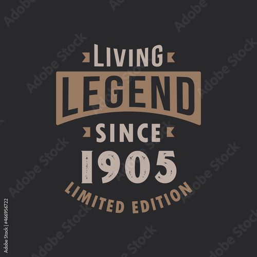 Fototapeta premium Living Legend since 1905 Limited Edition. Born in 1905 vintage typography Design.