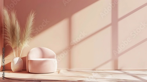 Fototapeta premium Living room interior design with comfortable pink sofa, mockup, modern design...