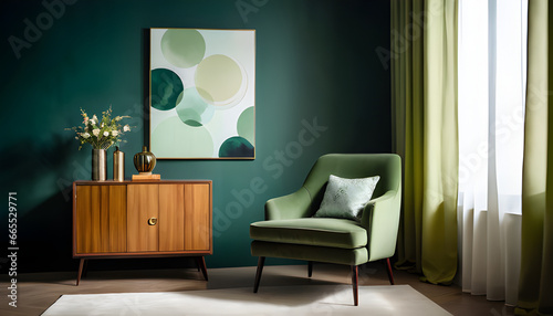 Fototapeta premium Living room interior with a chair and a painting on the wall