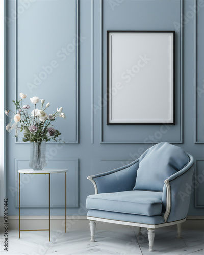 © Dewi, Fototapeta premium Living room interior with couch and blank photo frame on the wall, version 126