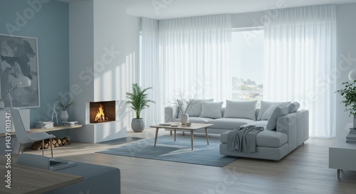 Fototapeta premium Living Room Interior with Fireplace and Modern Decor