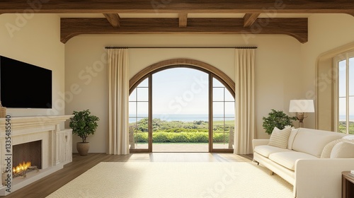 © asdir, Obraz premium Living Room Interior with Ocean View and Fireplace in Home