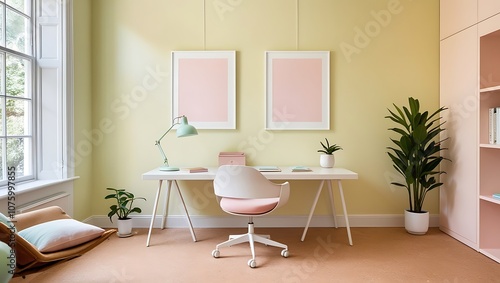 Fototapeta premium Living room wall poster mockup. Interior mockup with house background. Modern...