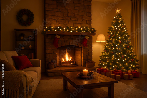 Fototapeta premium living room with christmas decorations