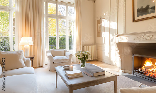 Fototapeta premium living room with fireplace-generative ai