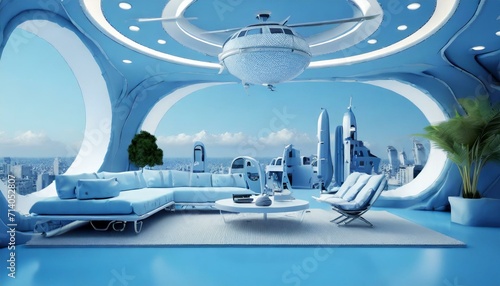 © Sadaqat, Fototapeta premium Living Tomorrow: Exploring a Futuristic Lounge in 2050"